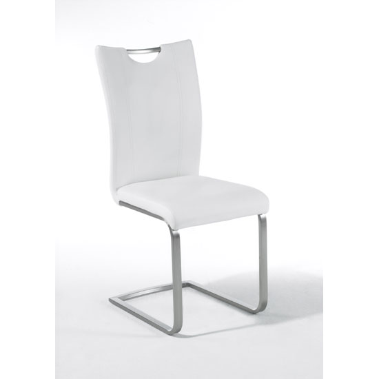 Pavo Swinging White Faux Leather Dining Chair With Handle
