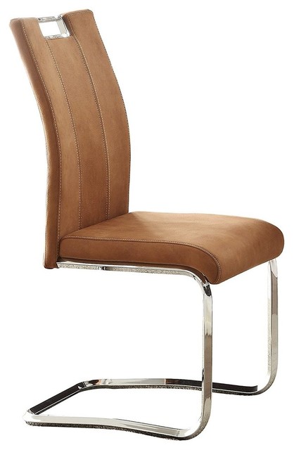 Metal and Leather Side Chairs With Handle, Camel Brown ...